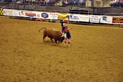 ReplyDeleteThat "clown" got tossed over the bull's head and landed behind the bull. He then got up and ran after it. No telling if that toss was intentional or not, but it was spectacular.