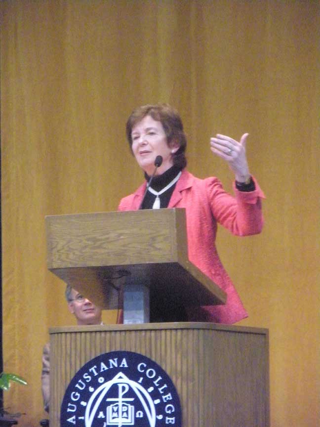 Mary Robinson fought for human rights throughout her whole career. In 2010 she was the U.N. High Commissioner for Human Rights. She is a member of the Club of Madrid, a group which works to promote Democracy world wide. She is also a member of a group of world leaders called The Elders which works to solve difficult world problems. This group includes individuals such as Nelson Mandela, and Archbishop Desmond Tutu. On Thursday evening she presented an address in which she discussed the relationship of global warming to the failure of traditional agricultural practices leading to hunger and famine particularly in Asia and Africa.